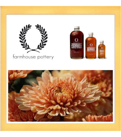Visit your local garden shop and pick up a few effortlessly beautiful Chrysanthemums ~the stalwart champions and queen of the Autumn garden, to grace the table as the perfect Fall centerpiece, or place a couple around the table perimeter, to cultivate charming color and romantic rustic outdoor ambiance. Include the New England tradition of serving real Vermont Maple Syrup with brunch and position several bottles of Farmhouse Pottery Syrup with true vintage vibes alongside place settings for guests to enjoy. Farmhouse Pottery is an old world pottery shop in modern day Vermont. Established in 2012, their journey began by creating a community of artisans that have a deep love for simple, beautiful pottery. Today, they offer a lifestyle with beautiful handmade wares and household goods rooted in the pursuit of authenticity, integrity, and joyful living.