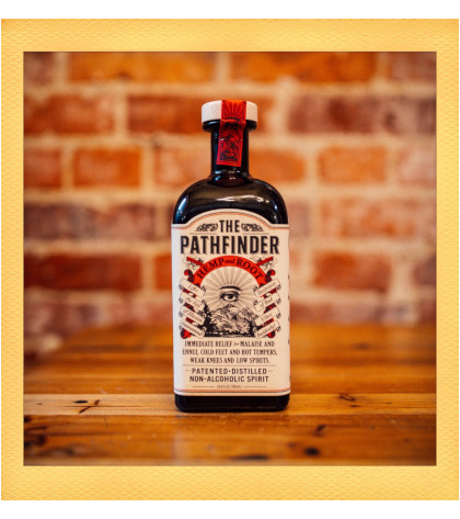 The Pathfinder Hemp & Root. An absolute alchemy age-old fermentation and distillation process that yields a powerful elixir unlike anything else in modern times. The Pathfinder Hemp and Root is inspired by the apothecarial mysteries of Old West snake oil salesmen, alternative medicine, and the supernatural marvels that go hand-in-hand with them. The resulting liquid is equally wild and enigmatic, leading drinkers to new realms of flavor both tangible and surreal. With an eye to the future of drinks and a thirst for progress in booze-free spirits, The Pathfinder Hemp and Root hearkens to a bygone age while elevating non-alcoholic spirits. For immediate relief of malaise and low spirits.